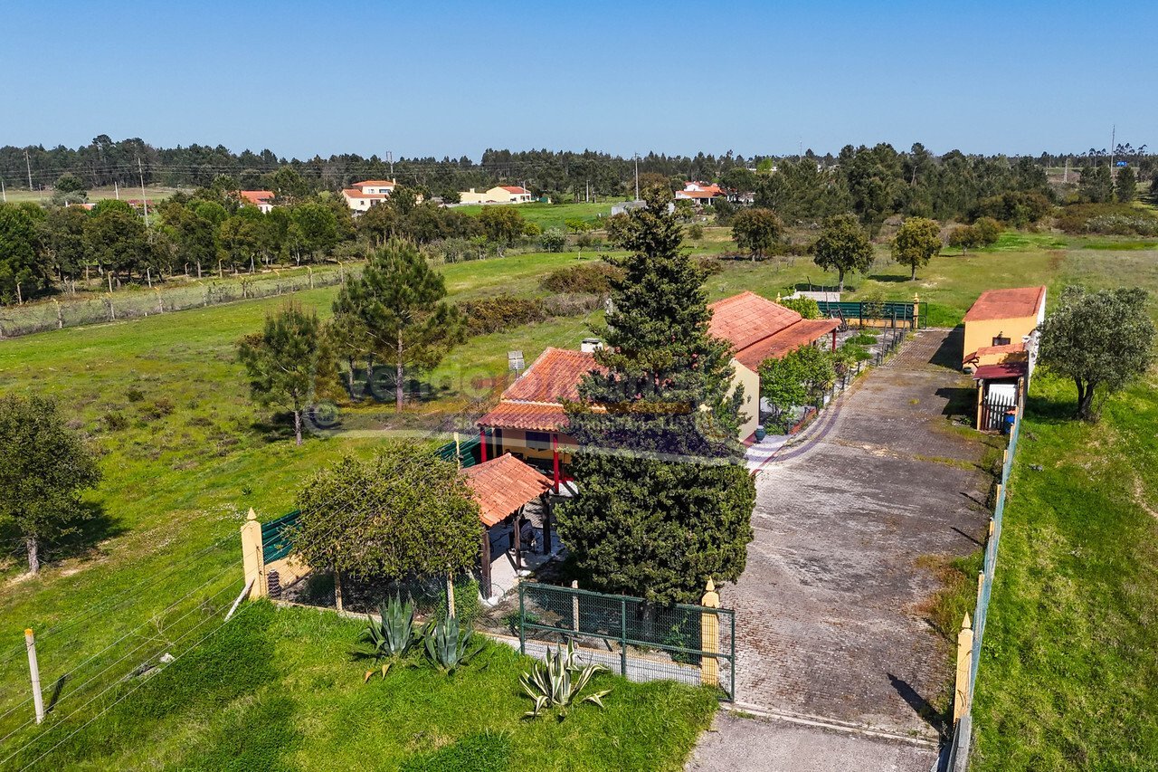 No coração da tranquilidade de Marinhais, distrito de Santarém, encontra esta encantadora moradia de estilo rústico, inserida num generoso lote de 5.000m², onde a natureza e o sossego são protagonistas.